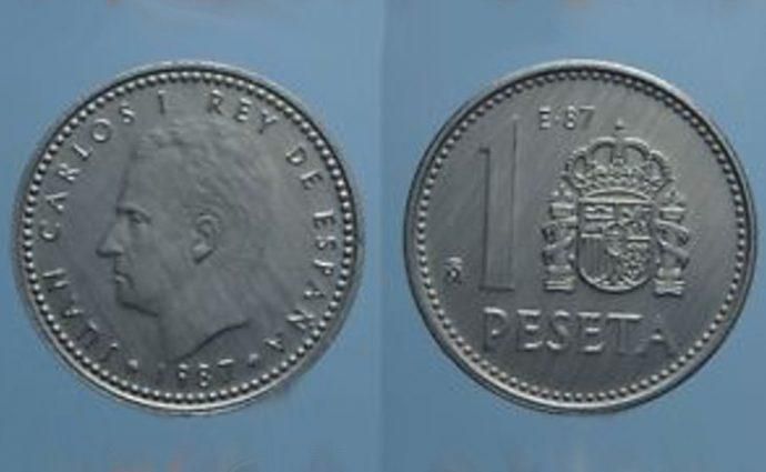 La peseta de 1987 E-87. Acuñada en la III Exposición Nacional de Numismática. Se suelen pagar 45 euros por una de ellas.