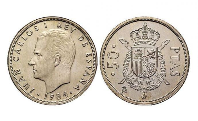 50 pesetas de 1984. Las monedas grandes de 50 pesetas, de antes de los 90, se compran por entre 60 y 70 euros.