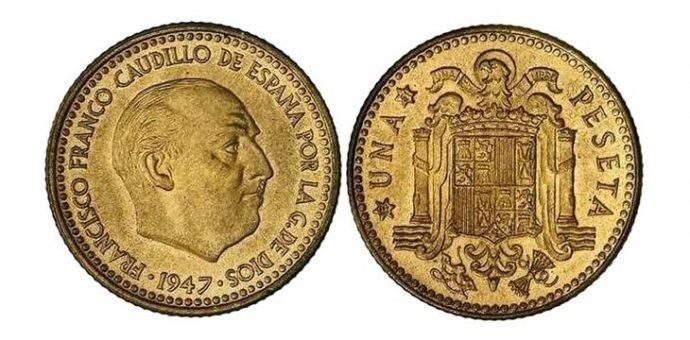 1 Peseta 1947. Estas monedas pueden llegar a valer hasta 1.400 euros.