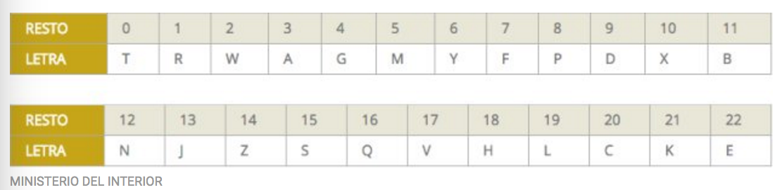 La elección de la letra no es al azar. El número del DNI se divide entre 23 y, según el resto, se elige una letra.