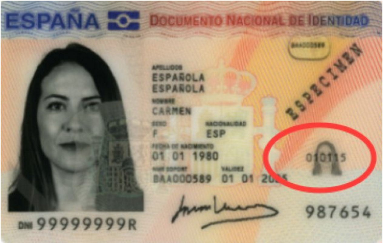 En la parte de atrás, hay unos dígitos llamados 'Equipo' que sirven para identificar la comisaría de Policía donde se realizó el DNI. Las cifras que aparecen sobre la 'imagen fantasma' del DNI 3.0 corresponden simplemente a la fecha de expedición en formato DDMMAA.