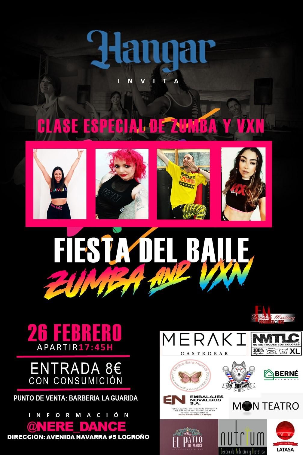La discoteca Hangar de Logroño acoge el próximo sábado 26 de febrero un evento de baile único a partir de las 17,45 horas. Se trata de una actividad que combina dos disciplinas de baile deportivo: la Zumba y el VXN. A lo largo de dos horas, las personas participantes en esta sesión podrán aprender pasos y coreografías de diferentes ritmos como la bachata, el merengue, la salsa o la cumbia en la clase de Zumba y el reguetón funky, la danza urbana y el hip hop en la clase de VXN.
