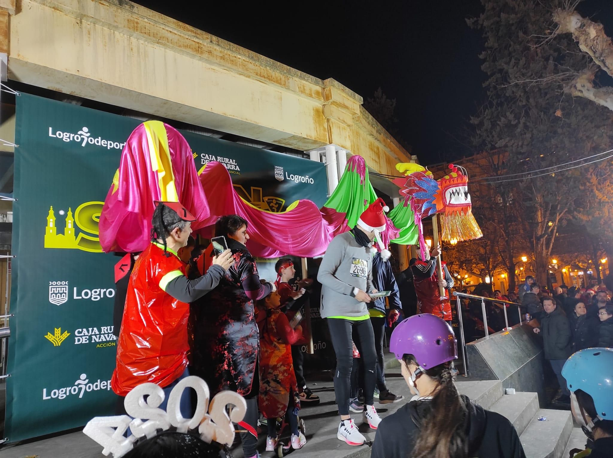 A las 18:00 era el turno de la Carrera Popular de 3,5 kilómetros y, al igual que en la infantil, la salida era en Vara de Rey (frente a la Concha del Espolón), con la meta fijada en Muro de la Mata. Un dragón chino, un coche, referencias a Fernando Alonso, Spiderman y los clásicos gorritos de Papá Noel han dibujado un bonito encuentro en la tradicional cita. A la hora de premiar las ideas más originales, los galardones han ido para el disfraz de Dragón Chino, El Coche de Ferrari y Aston Martin, ET el Extraterrestre, Las 12 Campanadas y Abduciendo Vacas.