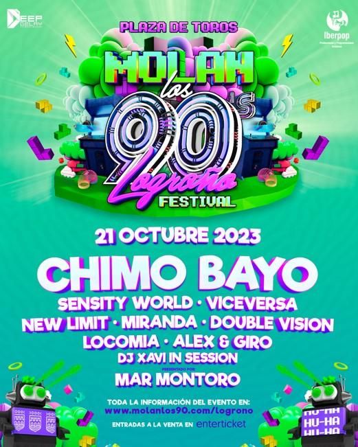 Logroño regresa este otoño a los 90 con Chimo Bayo, Sensity World y Viceversa, entre otros artistas míticos de esta época. Por primera vez, el tour de 'Molan los 90' hace parada en la capital riojana, concretamente en la plaza de toros de La Ribera.