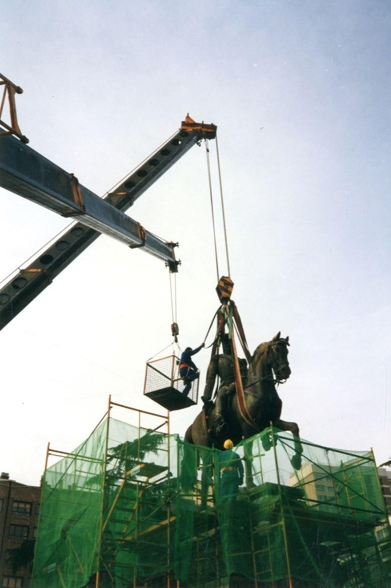 La idea inicial, plasmada en boceto en 1871, poco o nada tiene que ver con la que hoy podemos contemplar hoy en día. La estatua ecuestre, realizada en bronce, finalmente vio la luz gracias a una suscripción popular que recaudó 57.775,55 pesetas, aunque el coste final, según las fuentes de la época, ascendiese a algo más de cien mil pesetas.