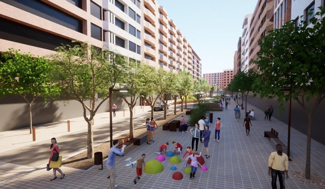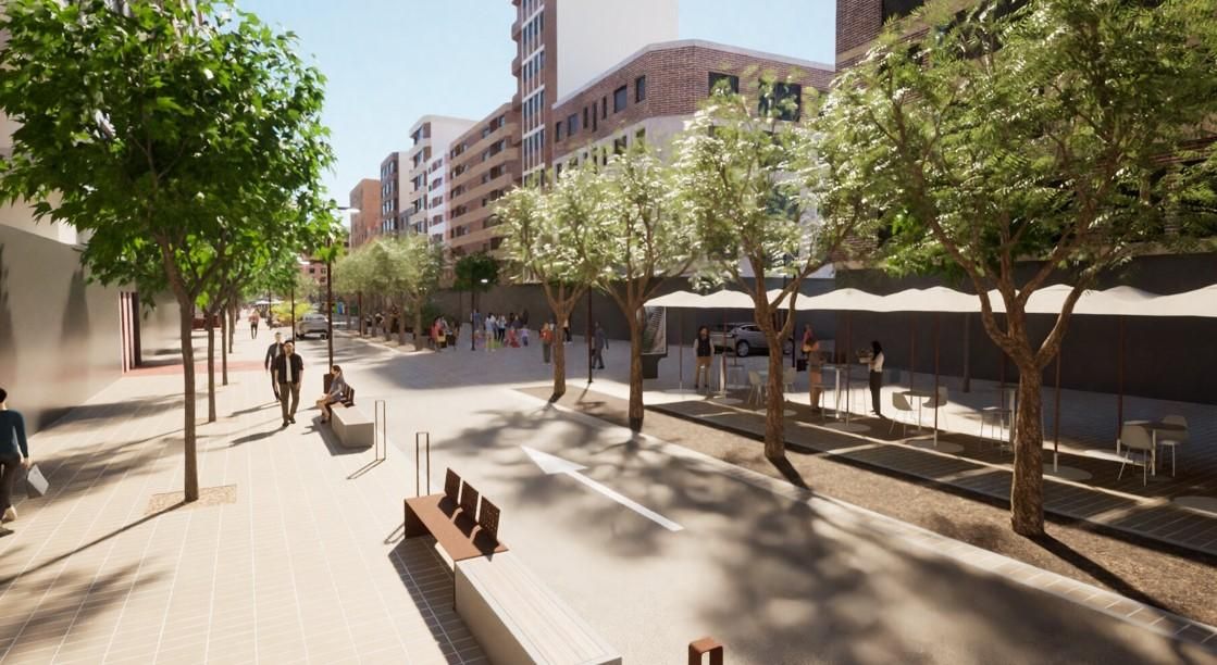 La calle San Antón se encuentra en el interior del área pacificada F que define el PMÚS del año 2013. El anteproyecto presentado hoy plantea una plataforma única, un aumento del arbolado y la creación de zonas estanciales y de juegos infantiles.