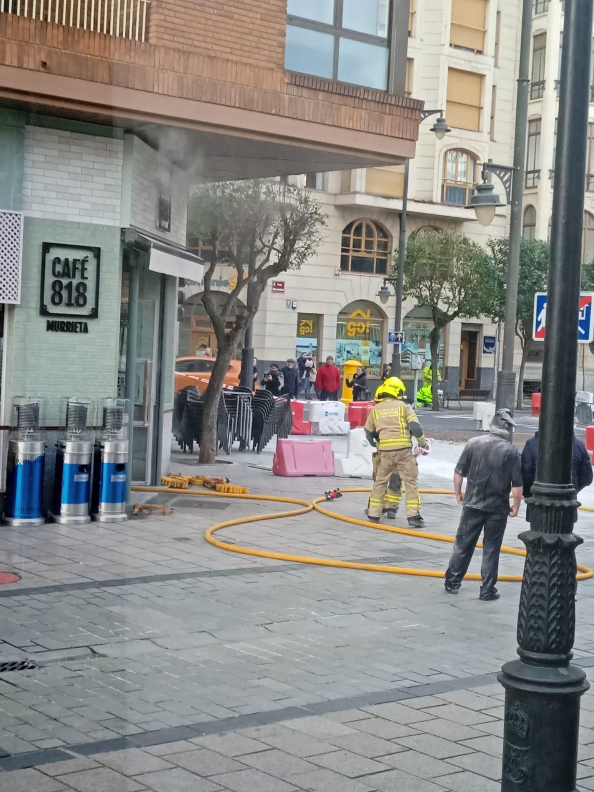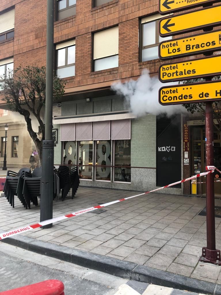 Susto a primera hora de este miércoles, con una fuerte humareda saliendo del café 818, junto a la fuente Murrieta de Logroño.