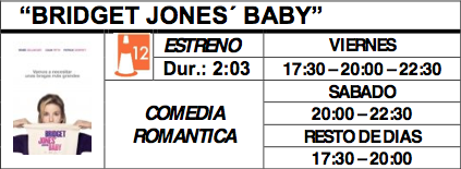 Cartelera Bridget Jones regresa en su cuarentena de edad con la comedia romántica `Bridget Jones Baby´; un documental sobre los Beatles en sus giras; y `Suburra´,un feroz retrato de la corrupción en Roma, entre los estrenos de la semana. Cartelera Rioja2 15 de septiembre de 2016 07:50 h 0 Etiquetas / Logroño