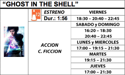 Scarlett Johansson protagoniza `Ghost in the Shell´, la adaptación al cine de una famosa saga de ciencia ficción; desde Francia nos llega `Mañana empieza todo´ la nueva comedia de Omar Sy (`Intocable´) y `Cantábrico (Los dominios del oso pardo)´, un espectacular y entrenido documental de naturaleza.