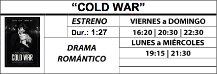 `Ha nacido una estrella´, Bradley Cooper y Lady Gaga protagonizan un nuevo remake del clásico de Judy Garland; `Venom´, Tom Hardy se mete en la piel del villano de Spiderman en la película más oscura que se ha hecho de superhéroes; `Cold War´, un drama romántico ambientado en la Guerra Fría