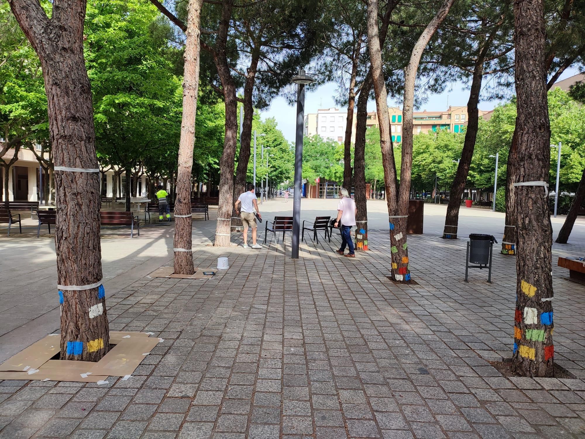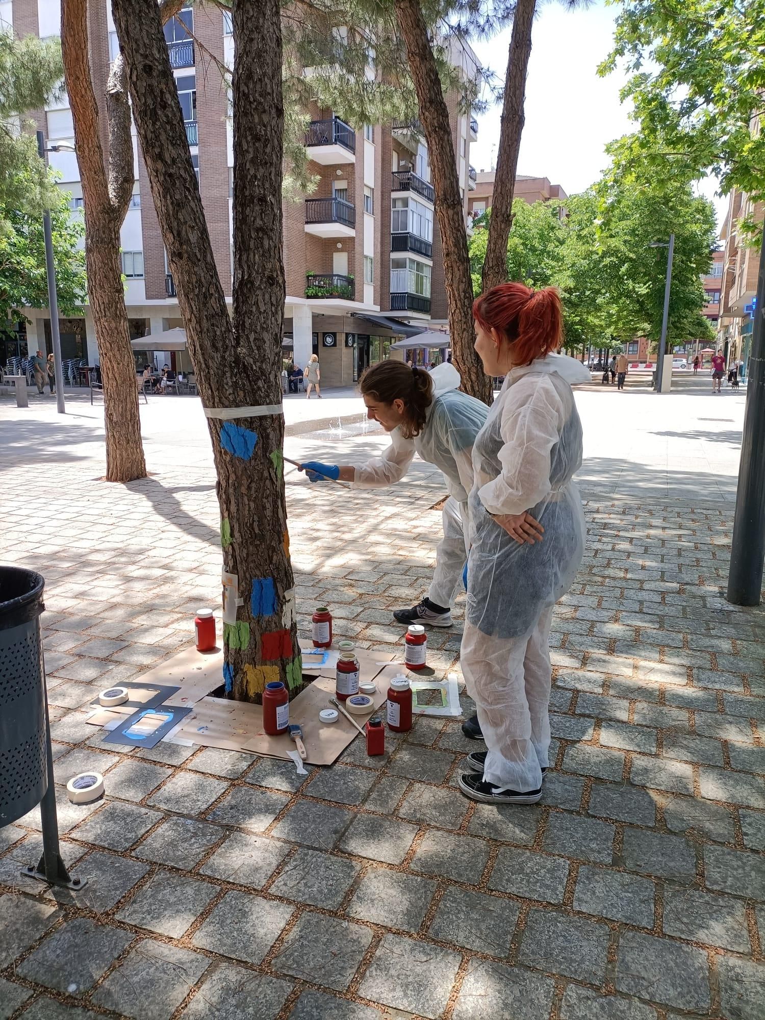 El objetivo de esta intervención ha sido “pintar figuras cuadradas con distintos colores y tamaños en los troncos del rodal de pinos de esta zona central de la plaza”, ha indicado el concejal, quien ha señalado que “los jóvenes quieren representar con ella la cantidad de energía y vitalidad de esta masa forestal compacta y vital de pino y su intención es también crear un jardín cromático que atraiga la mirada de los vecinos, que les invite a recorrerlo y les haga reflexionar sobre la importancia de los árboles y del medio natural”. Además, se han colocado cajas nidos para pájaros en estos ejemplares.