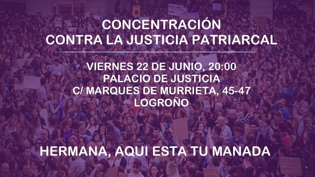 La condena por abuso sexual y no por agresión despertó una tormenta política y social, que desembocó en multitudinarias manifestaciones bajo el lema “no es abuso es violación”. En Logroño, cientos de personas salieron a la calle para mostrar su rechazo y volverán a hacerlo este viernes. Así, movimientos feministas de Logroño invitan a la sociedad a la “concentración contra la justicia patriarcal” que tendrá lugar este viernes 22 de junio a las 20:00 horas en el Palacio de Justicia“.