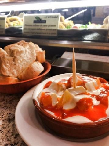 Un plato típico español son las patatas bravas. Es un pincho como ningún otro. Numerosos bares preparan el mismo plato, pero es en La Taberna De Laurel donde se prepara el mejor! Es a base de patatas blancas que se cortan y fríen. El éxito de estas patatas se encuentra dentro de la salsa. Se sirve con una salsa de tomate picante acompañado de un poco de alioli.