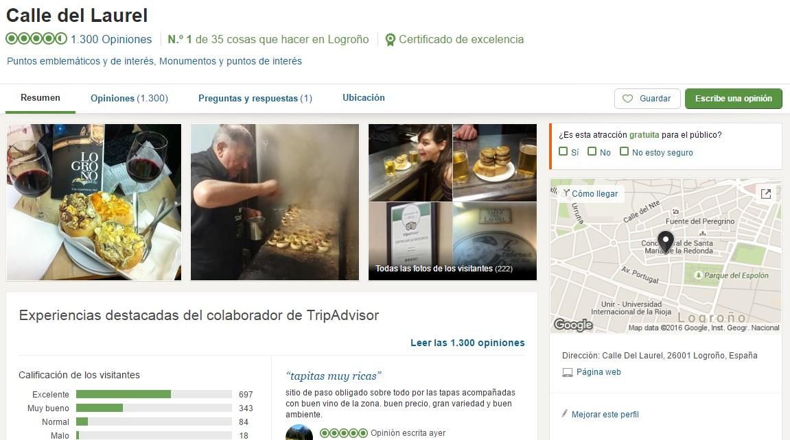 En Trip Advisor la calle Laurel cuenta con más de 1.300 opiniones sobre los pinchos y los bares de nuestra famosa calle.