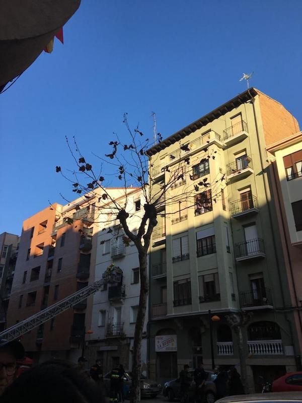 El suceso se ha producido a primera hora de esta tarde y, en estos momentos, los Bomberos y la Policía Local han trabajado en el lugar de los hechos y han desalojado a los vecinos a través de uno de los balcones del segundo piso mediante los Bomberos de Logroño.
