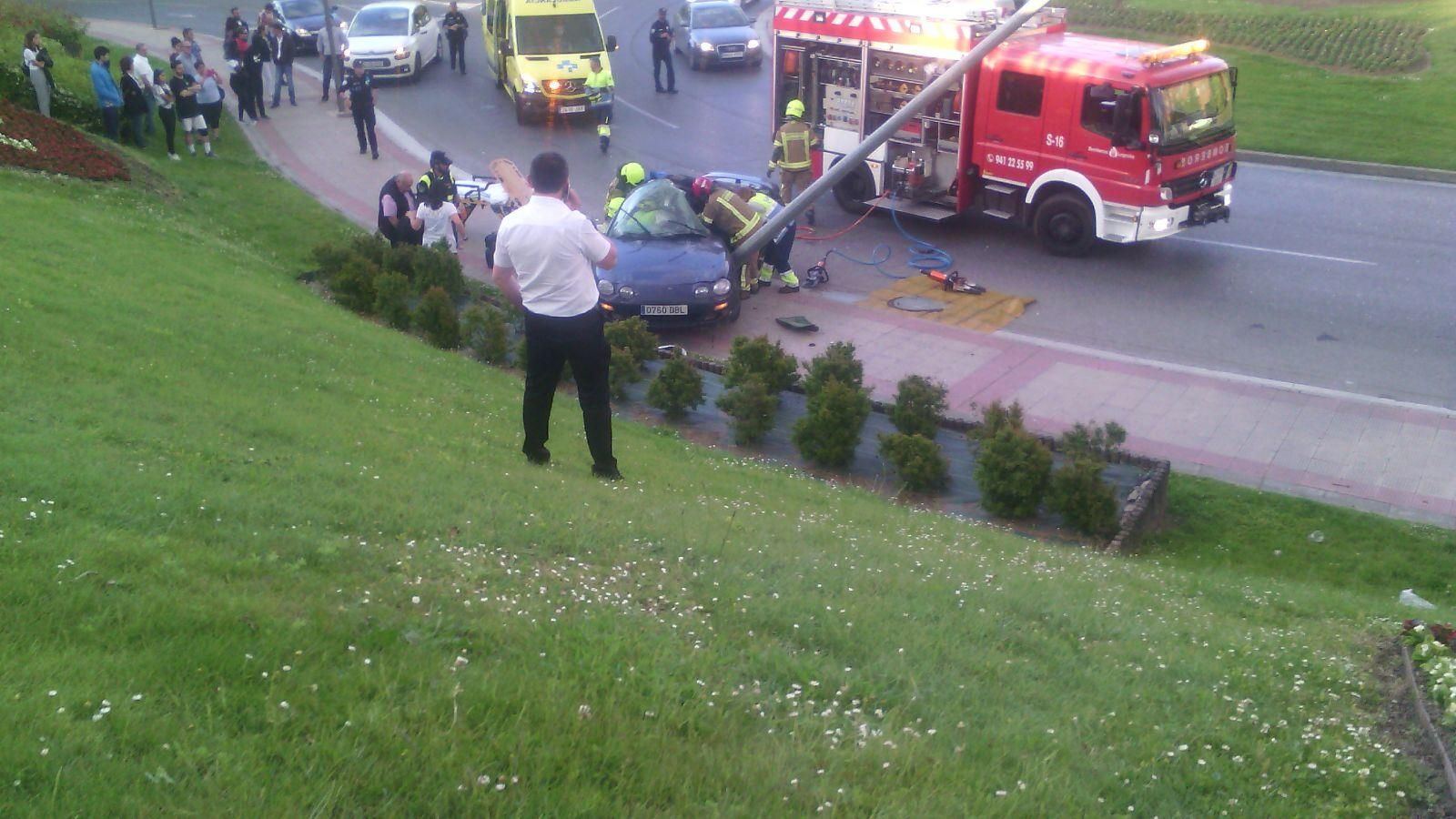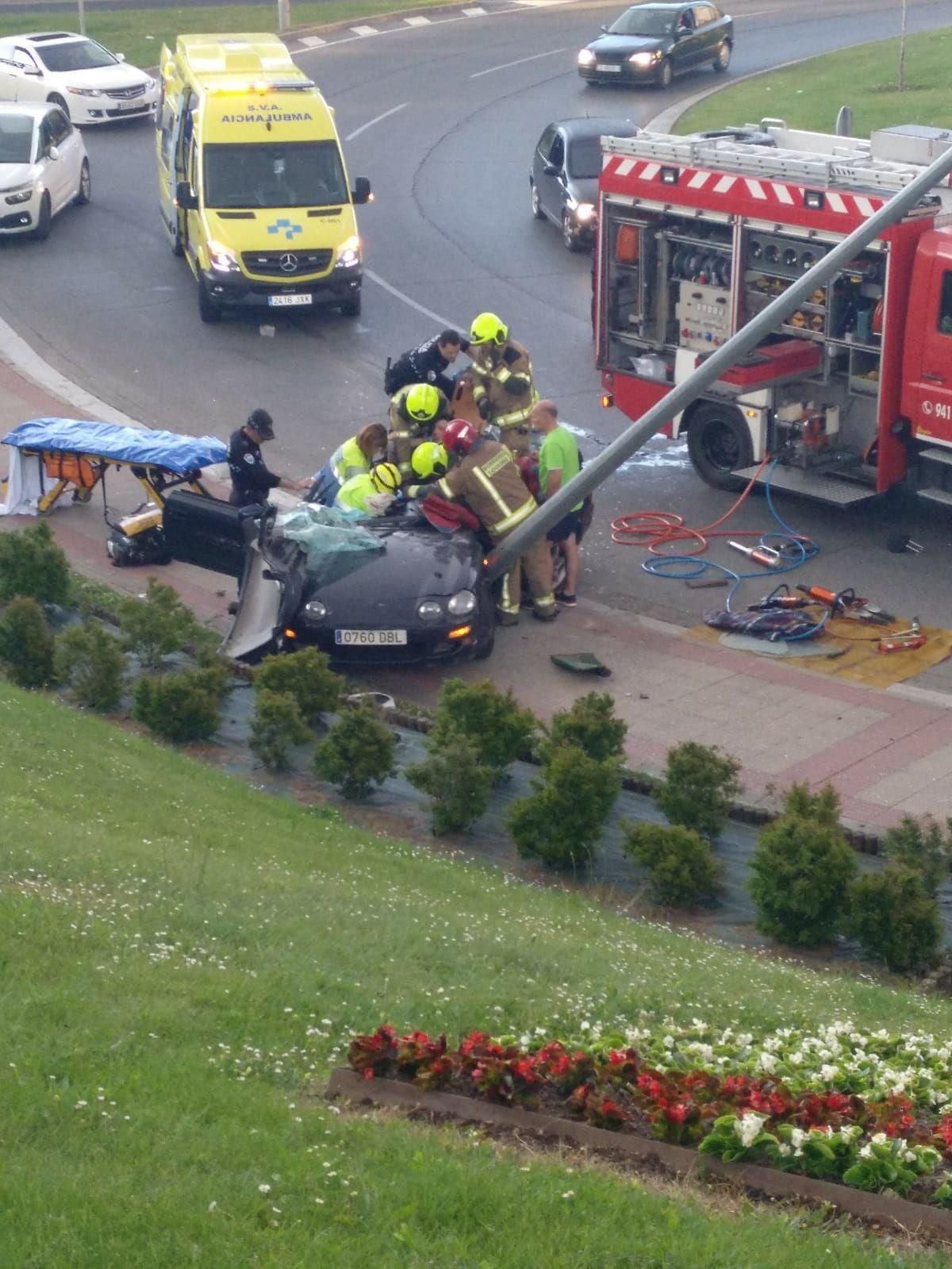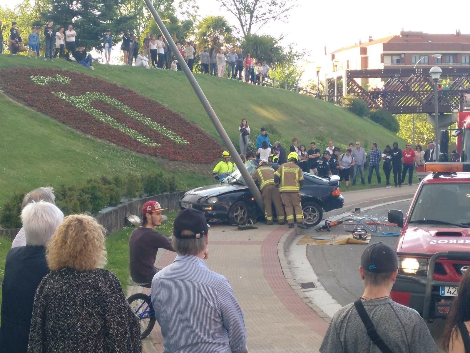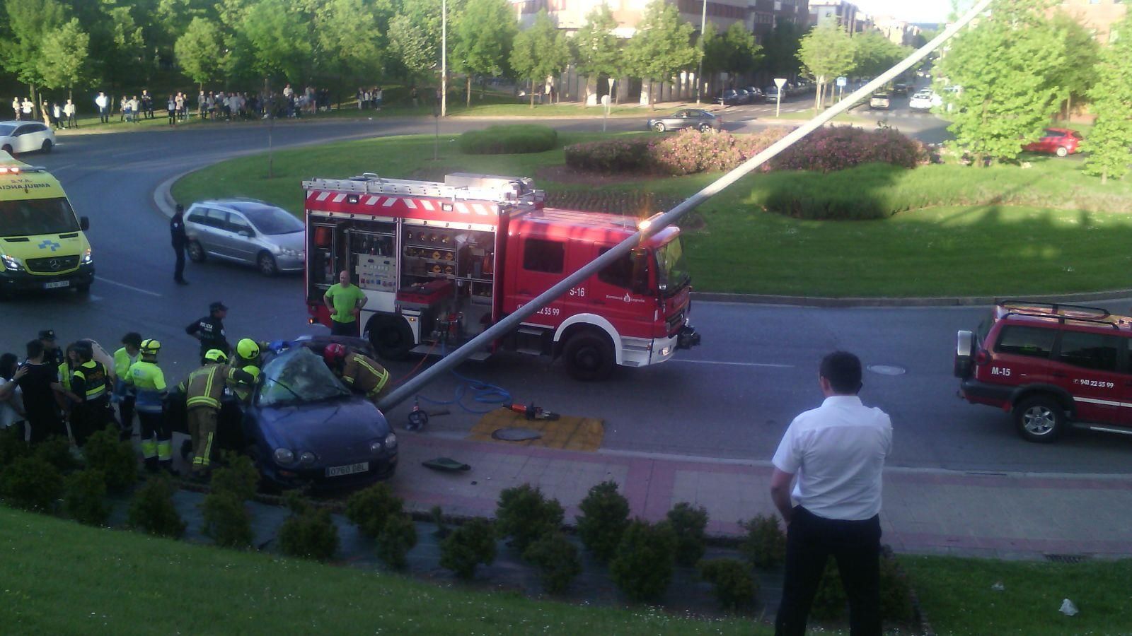 Un vehículo se ha salido de la vía y ha chocado frontalmente contra una farola en la rotonda de la Ñ, en la confluencia de las calles Portillejo y Avenida de Club Deportivo de Logroño.