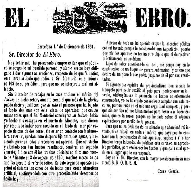 Por último, la alcaldesa se han referido también a una idea sobre la que se lleva tiempo trabajando y que sigue siendo objeto de análisis por parte de la comisión que se encarga de la conmemoración: la posibilidad de construir una réplica del artilugio submarino que Cosme García ideó, construyó y probó con éxito; “el primer submarino español que navegó bajo las aguas del mar”. “Nos gustaría poder contar con ella y así situarla en un lugar destacado de la ciudad, como podría ser la Casa de las Ciencias o incluso el propio parque de Cosme García, en las traseras del IES”.