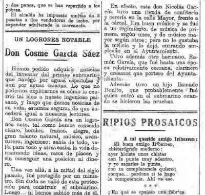 Cosme García Sáez nació en la calle Herrerías de Logroño en 1818. Cuando se cumplen por tanto dos siglos de su nacimiento, el Ayuntamiento y la sociedad logroñesa han querido rendir homenaje a la figura del que fuera uno de los hombres más ilustres del siglo XIX. Conocido fundamentalmente por ser inventor del submarino, su ingenio le llevó a idear otros artilugios de gran utilidad en su momento como la máquina para sellar en las oficinas de Correos, una imprenta o un modelo de fusil.