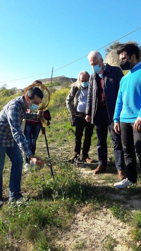 El alcalde de Logroño, Pablo Hermoso de Mendoza, el consejero de Sostenibilidad y Transición Ecológica, Álex Dorado, y el concejal de Medio Ambiente, José Manuel Zúñiga, han visitado esta tarde con la Asociación ZERYNTHIA la zona de observación de la mariposa “arlequín” (Zerynthia rumina) que se encuentra en el barrio de El Campillo.