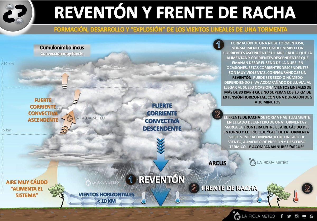 Pero, ¿quieres saber por qué sucedió? Como todo fenómeno meteorológico, este también tiene su nombre y su causa. Según explica nuestro colaborador, Dani Benito (La Rioja Meteo) a través de esta infografía, lo que se dió el lunes fue un “reventón” seguido de un “frente de racha”.