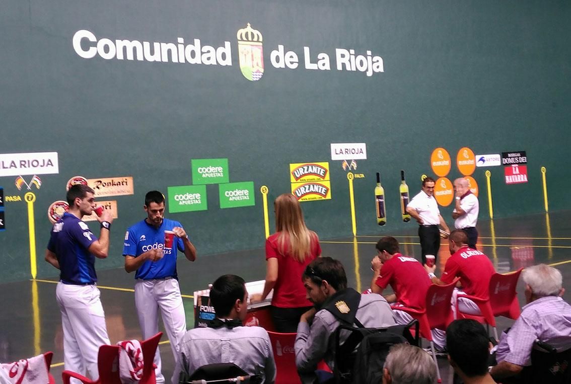 Pobre frontis y menos mal que no jugaba Irribarria en lugar de Olaizola, porque entonces quizá se hubiera declarado en huelga: los zambombazos de la pareja ganadora, más los de José Javier Zabaleta retumbaron hasta Haro. Pero en la ensalada de castañazos Zabaleta estuvo menos fino que Albisu, concediendo dos fallos más que su rival de puesto, ambos al no llevar con la diestra sendos saques restables.