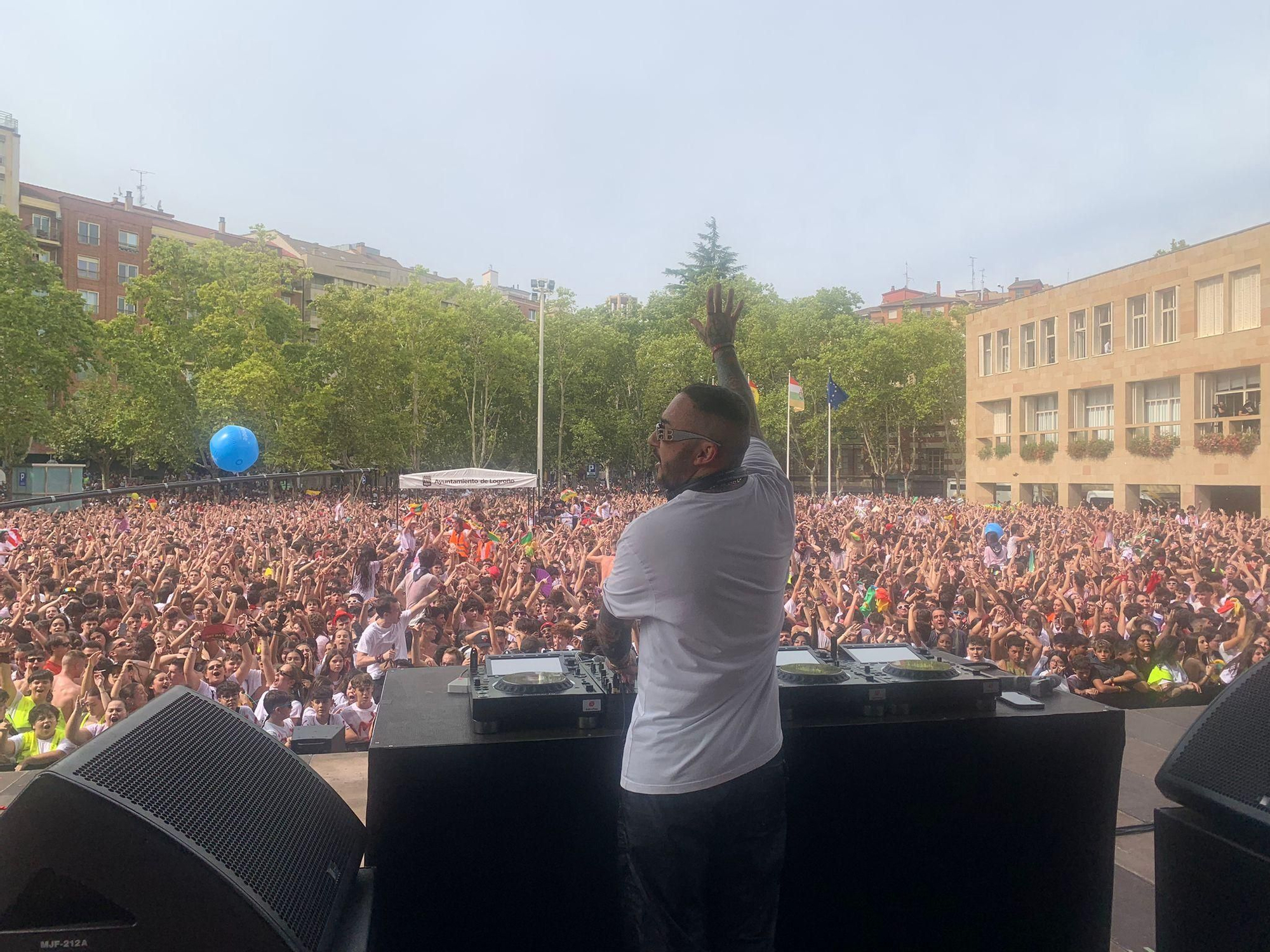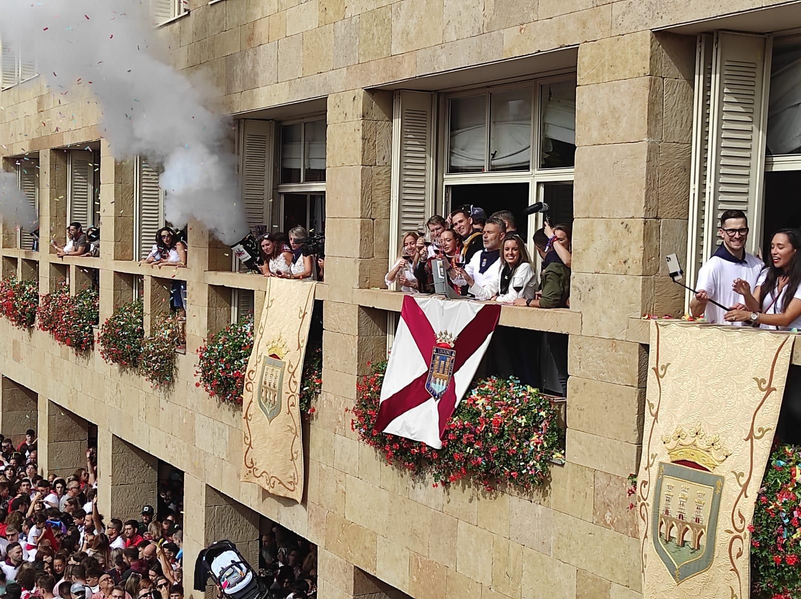 Al filo de las 12:00, el alcalde de Logroño ha salido al balcón para proceder al disparo del esperado cohete: “Logroñesas, logroñeses hoy nos están viendo en toda España, vamos a compartir esta alegría, esta animación, esta música y este vino, estos San Mateos quiero que nos acordemos de las mujeres, de las madres y de las abuelas. Os pido una cosa vamos a levantar las botas, los pañuelos, las banderas y las manos y vamos a gritar todos: 'Viva San Mateo, viva la mejor ciudad del mundo, Logroño, viva la mejor tierra del mundo, viva La Rioja”, ha pronunciado. Y el cohete ha surcado el cielo. Desatada la fiesta, DJ Nano ha elegido el Himno a Logroño para dar la bienvenida a las fiestas de la vendimia. Por delante, seis días de pura diversión.