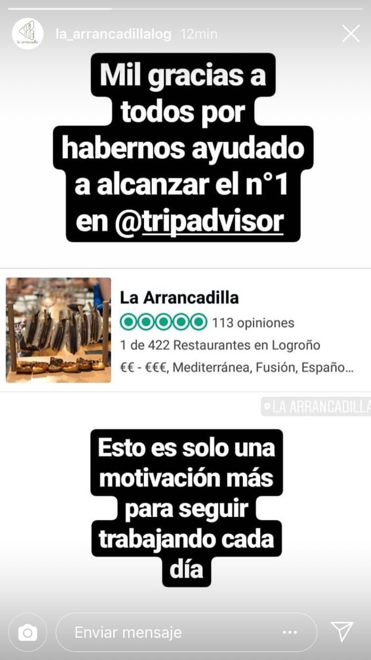 El restaurante, abierto hace tan solo unos meses, ha conseguido alcanzar el primer puesto entre los 422 locales de Logroño puntuados en Tripadvisor. Su comida y sus pinchos con marcado carácter mediterráneo que mezclan la tradición con la cocina más moderna, han conseguido cinco estrellas y decenas de opiniones favorables de los usuarios de la web de puntuación de turismo por excelencia.