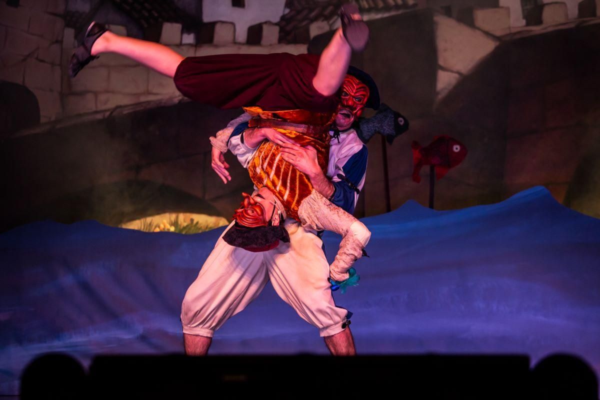 Como reflexiona Lapeña, en el caso de ‘La comedia del Sitio’, se puede encontrar “un 20% de actualización” sobre el guión base, con guiños a la actualidad nacional y riojana que atrapan al público. “Estos personajes, las medias máscaras, son muy grotescos, muy sátiros”, señala. “Juegan con todo y lo llevan al límite”. Así, en escena, dos criados, dos amos, dos enamorados y la muerte, utilizan la historia del asedio logroñés de Albia de Castro para hacer sátira de temas tan universales como el amor, la guerra, las clases sociales o el fin de la vida. “Es muy complicada la comedia, conlleva mucho trabajo actoral importante”.
