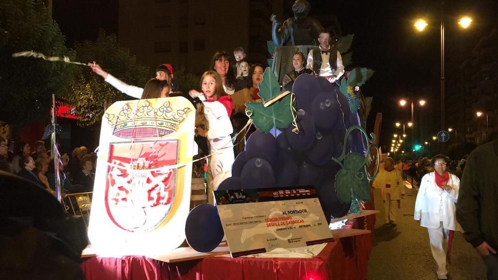 La carroza de la Asociación de Vecinos San Antonio de Logroño ha sido premiada con el primer premio del desfile organizado por el Ayuntamiento de Logroño con motivo de las fiestas de San Mateo y 63ª Vendimia Riojana, y que ha tenido lugar esta noche a las 21:00 horas.