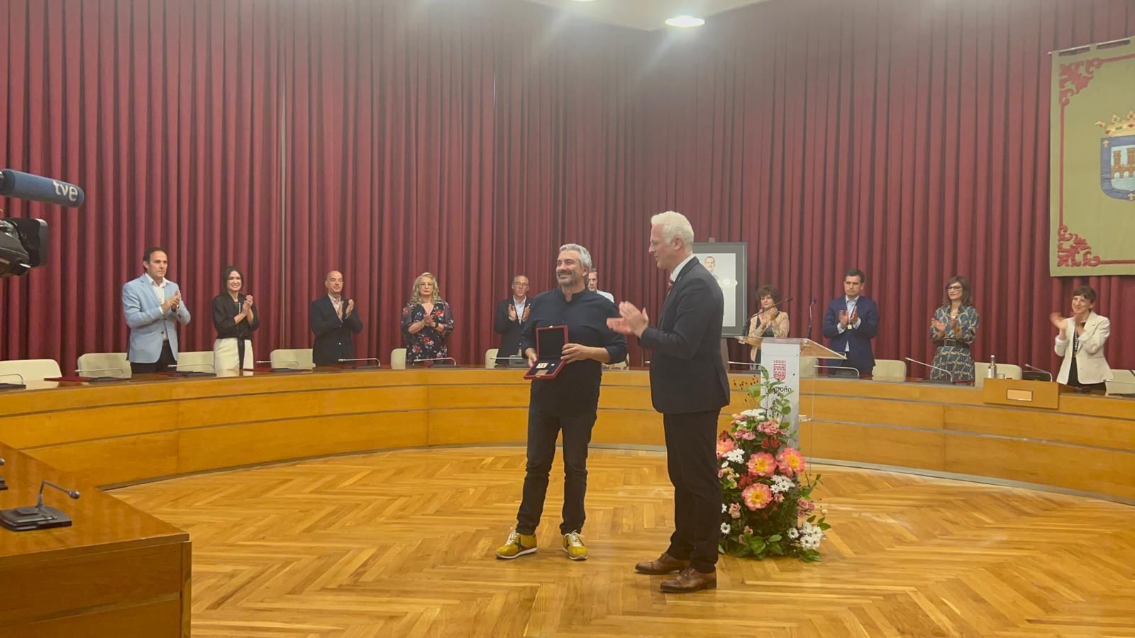 El alcalde en funciones, Pablo Hermoso de Mendoza, ha destacado el compromiso, dedicación, libertad y espíritu europeísta de los tres galardonados, durante el acto institucional que ha tenido lugar hoy, sábado 10 de junio, en el Salón de Plenos del Ayuntamiento de Logroño.