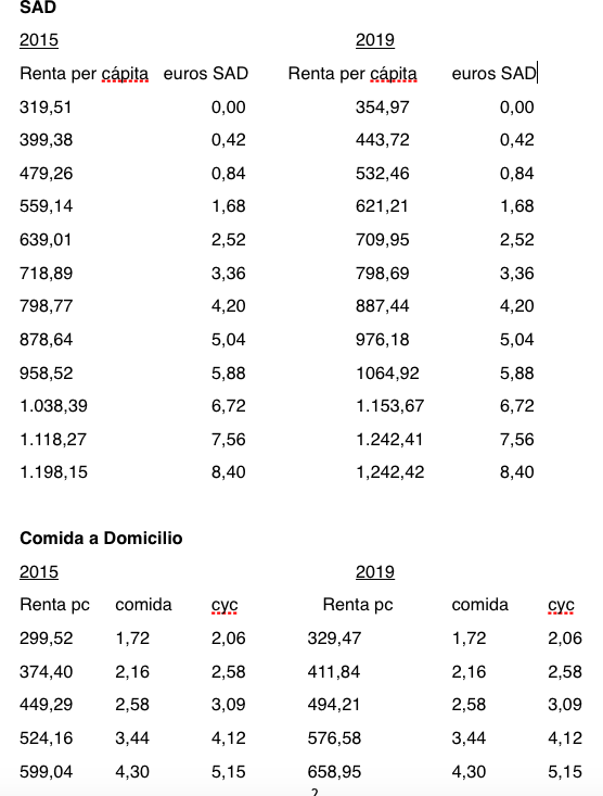 En cuanto al servicio ayuda a domicilio, una persona con una renta de 1.198 euros, con el mínimo del servicio (8 horas al mes), pagaba antes 8,40 euros por el servicio y ahora 6,72, lo que al año supone un ahorro de 161,28 euros.