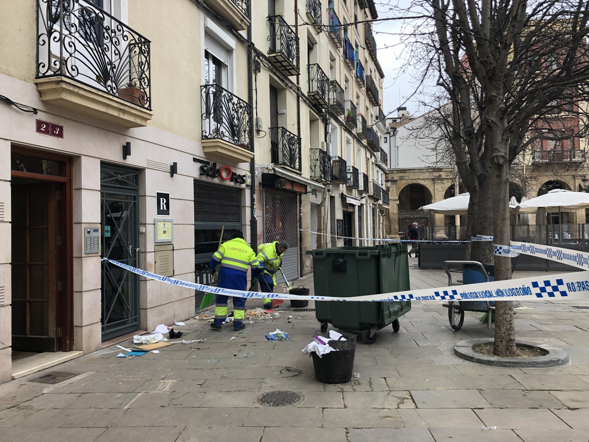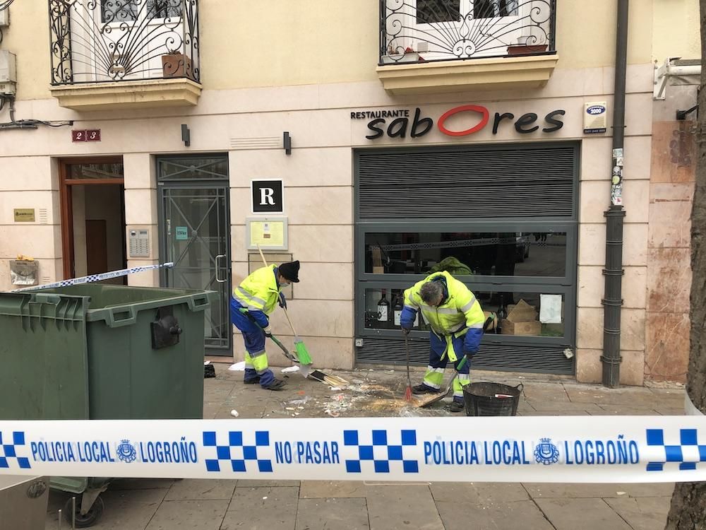 Hasta el lugar se han desplazado los Bomberos de Logroño y la Policía Local, así como trabajadores de Logroño Limpio para recoger los objetos lanzados a la calle.