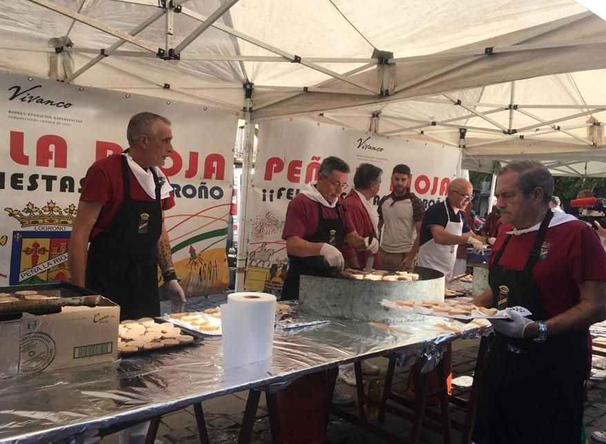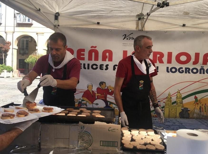 En esta ocasión, la Peña La Rioja, la más numerosa de la ciudad, ha ofrecido una degustación de confit de pato con reducción de vino de Rioja y pasas. Por su parte, la Peña La Uva ha preparado brocheta de solomillo sobre queso camerano y salsa de pimiento.