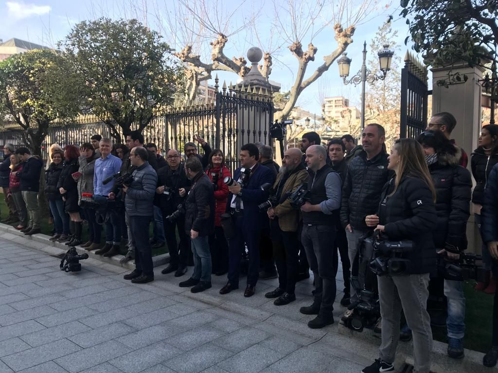 Sánchez ha llegado a Logroño entre gran expectación. Decenas de medios de comunicación regionales y nacionales se han dado cita en el Palacete para esperar al presidente, junto a numerosos funcionarios y curiosos que no han querido perderse este momento.