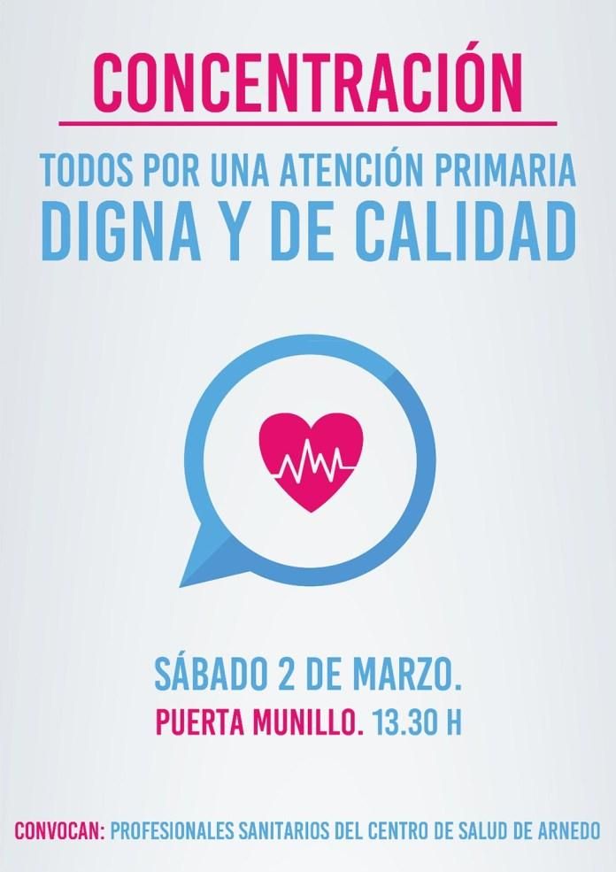 Los profesionales sanitarios del centro de salud de Arnedo se han concentrado hoy para reclamar una atención primaria digna y de calidad y han convocado a toda la ciudadanía para el próximo sábado 2 de marzo, a las 13:30 horas en la Puerta Munillo.