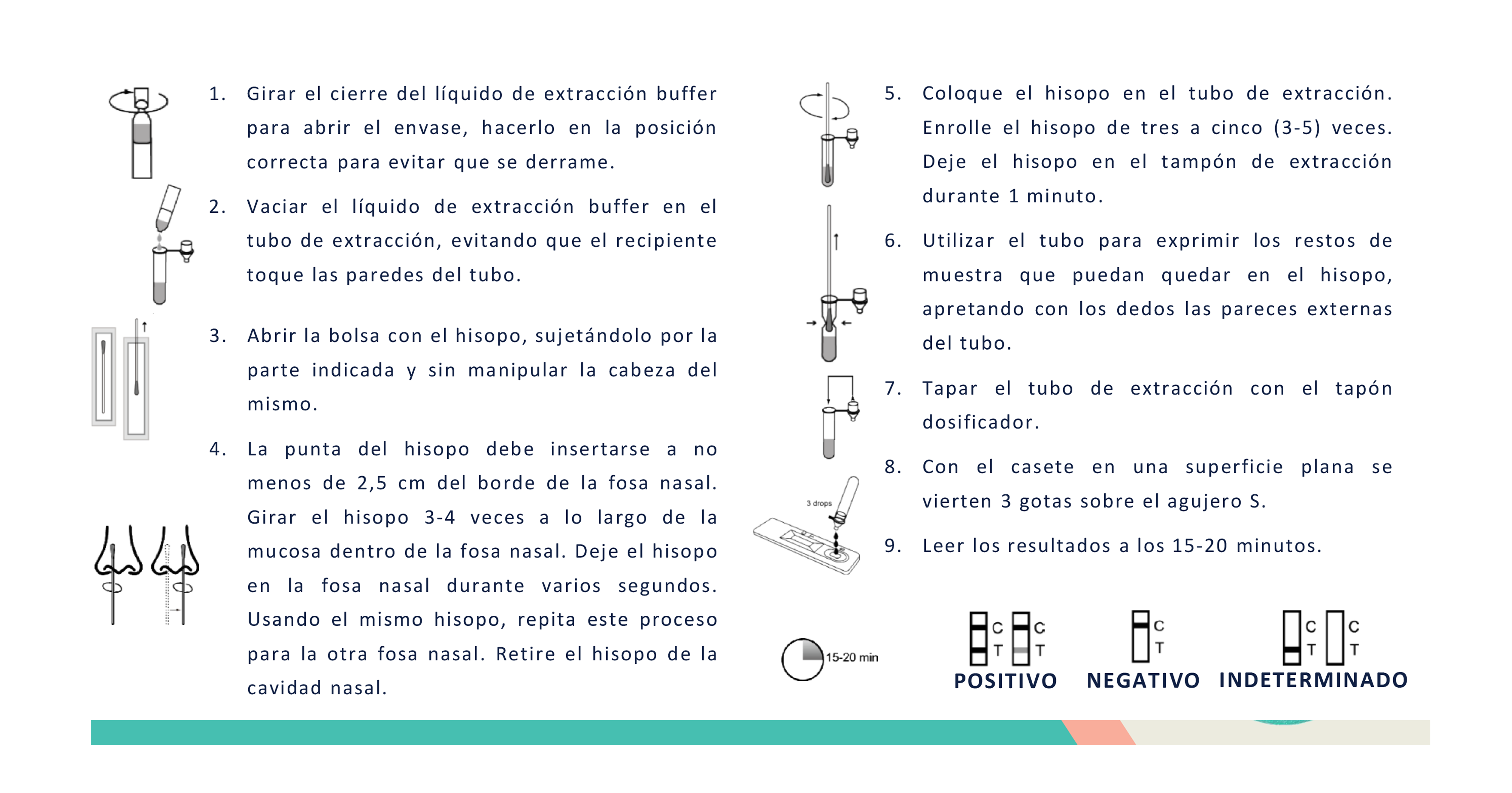 9. Leer los resultados a los 15-20 minutos.