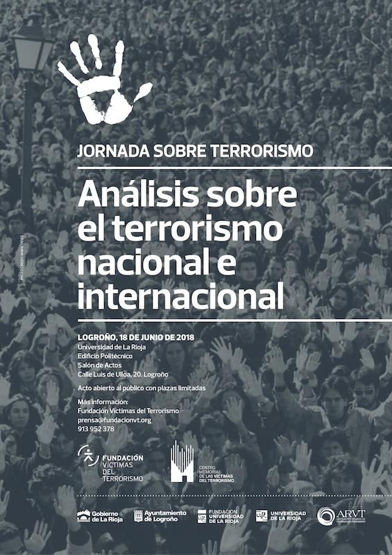 Este lunes 18 de junio, desde las 9,15 de la mañana, Logroño será sede de la Jornada sobre terrorismo “Análisis sobre el terrorismo nacional e internacional”, en el salón de actos del edificio Politécnico de la Universidad de La Rioja, organizada por el Centro Memorial de las Víctimas del Terrorismo y Fundación Víctimas del Terrorismo.