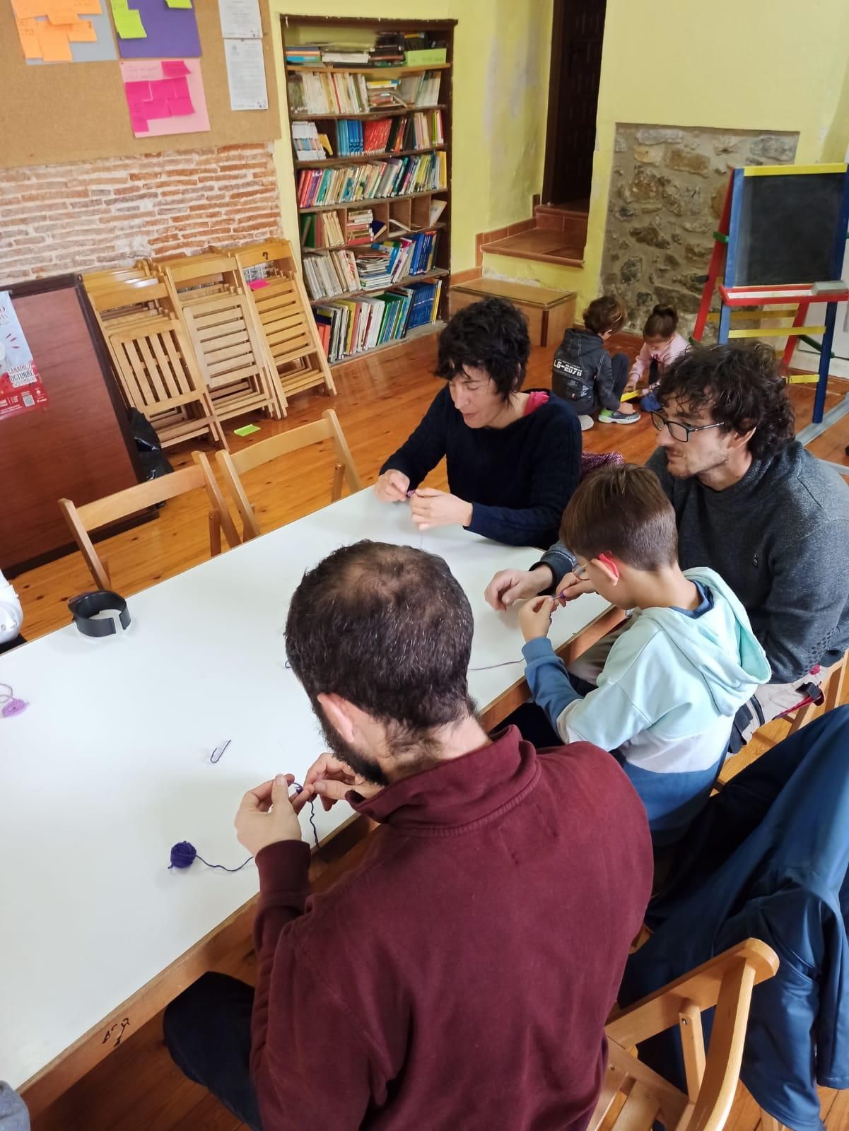 Una actividad que reunió en la Sala de Cultura a personas desde los 4 a los 80 años, a cargo de la Asociación de Amigos de San Román de Cameros, El latido de las mariposas, el taller Meer y Adriana Díaz, que se dedica a la cantería creativa.