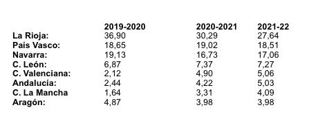 Por comunidades autónomas, los principales porcentajes de preinscripciones son: