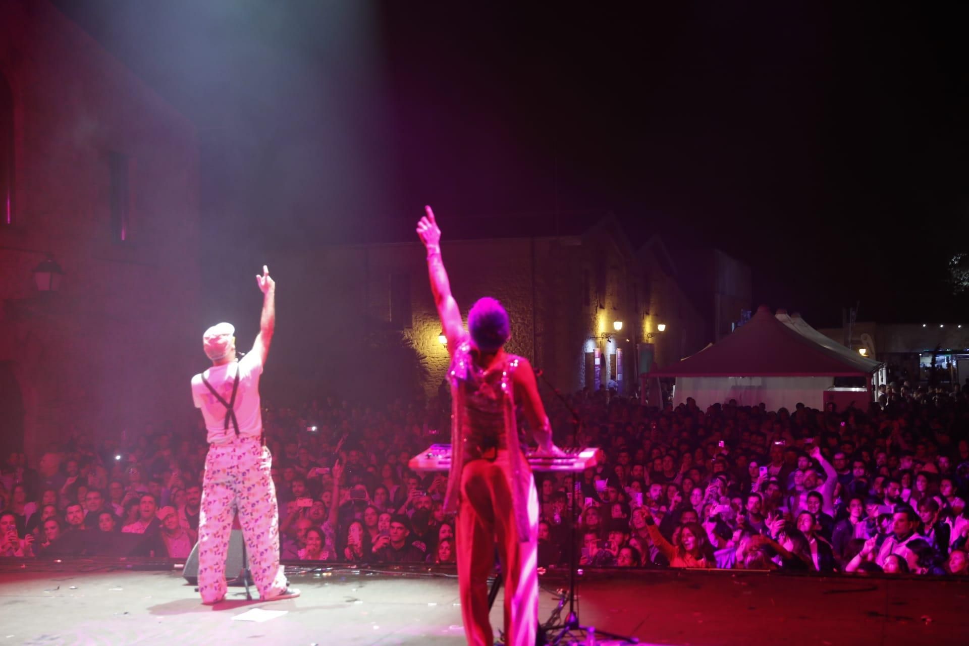 El público saltó y bailó durante una actuación llena de color en la que sonaron temas como 'PlisDonGou', acompañando el público con la letra o 'Bajo la luz perfecta'. La guinda la puso su pegadizo homenaje a Rafaella Carrá, 'Rafaella' (manos apuntando al cielo) y un espectacular juego de focos con el que se despidieron por todo lo alto.