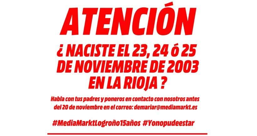¿Naciste el 23, 24 o 25 de noviembre de 2003 en La Rioja? Media Markt te busca