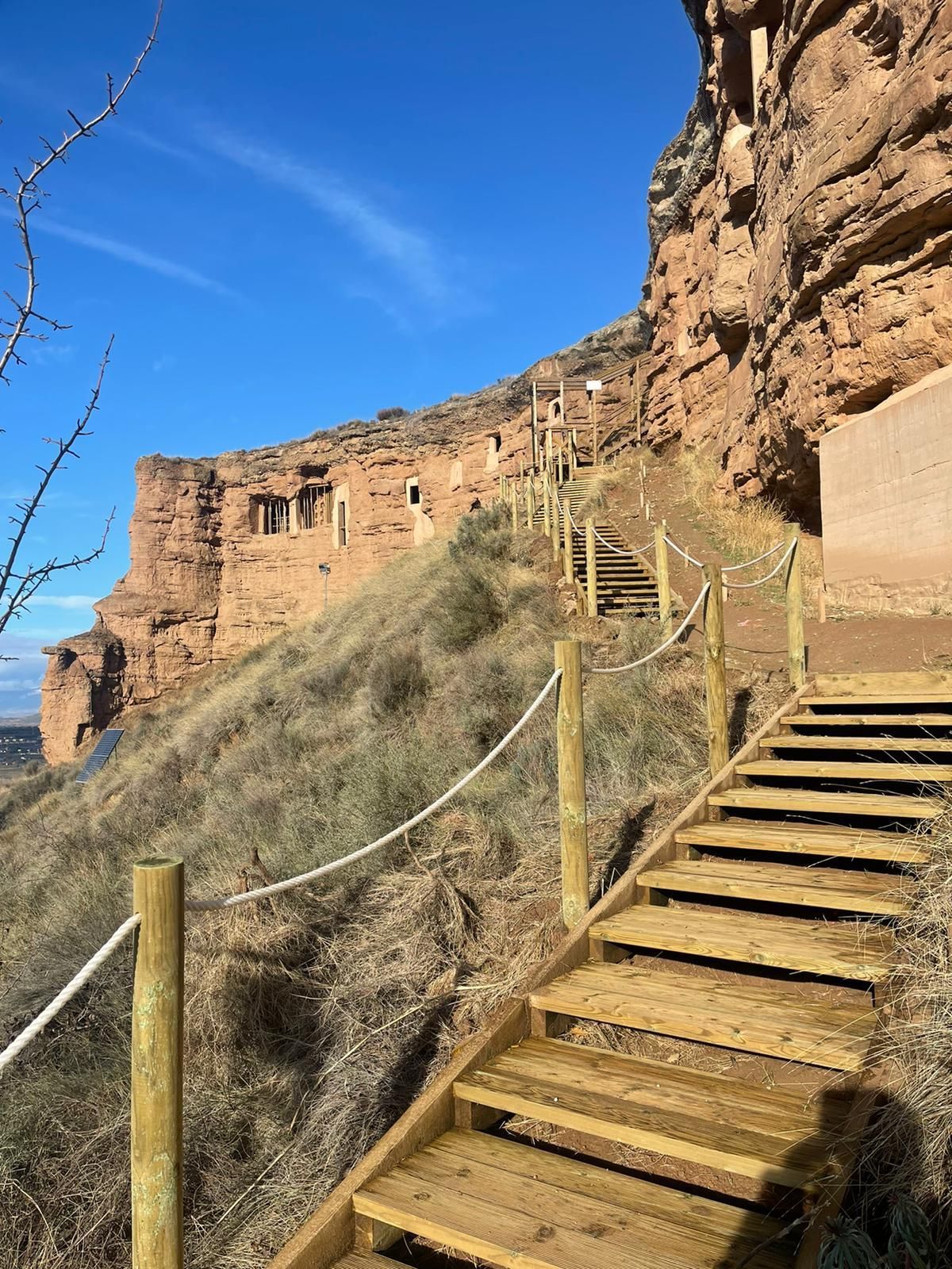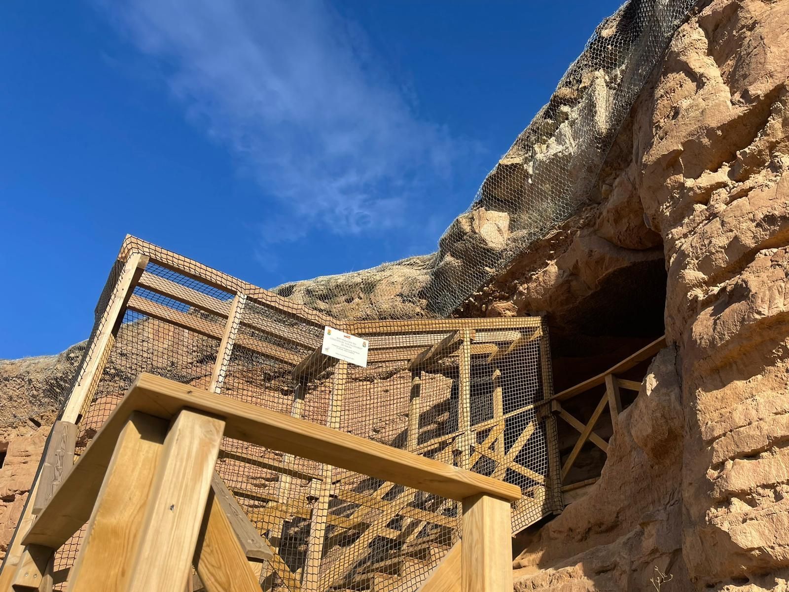 Para facilitar la visita al Conjunto, el Ayuntamiento ha instalado una pasarela de madera que comunica el área de descanso existente a la llegada al entorno de las Cuevas con las propias galerías, como ha detallado en nota de prensa. Además, se ha procedido a la instalación de protección de la cornisa de Farallón mediante la colocación de malla de triple torsión en la zona superior para seguir reforzando y garantizando la pervivencia en el tiempo de esta auténtica joya del Patrimonio riojano.