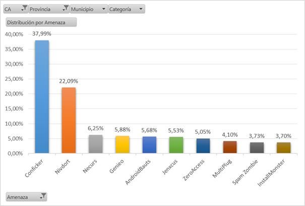 Respecto al tipo de ciberataques detectados, se trata mayoritariamente de zombies o bots que pertenecen a botnets controlados por ciberdelincuentes. Los bots son uno de los delitos cibernéticos más sofisticados y populares de hoy en día. Permiten a los hackers tomar control de muchos equipos a la vez y convertirlos en equipos zombies, que funcionan como parte de un poderoso botnet que propaga virus, genera spam y comete otros tipos de delitos y fraudes.