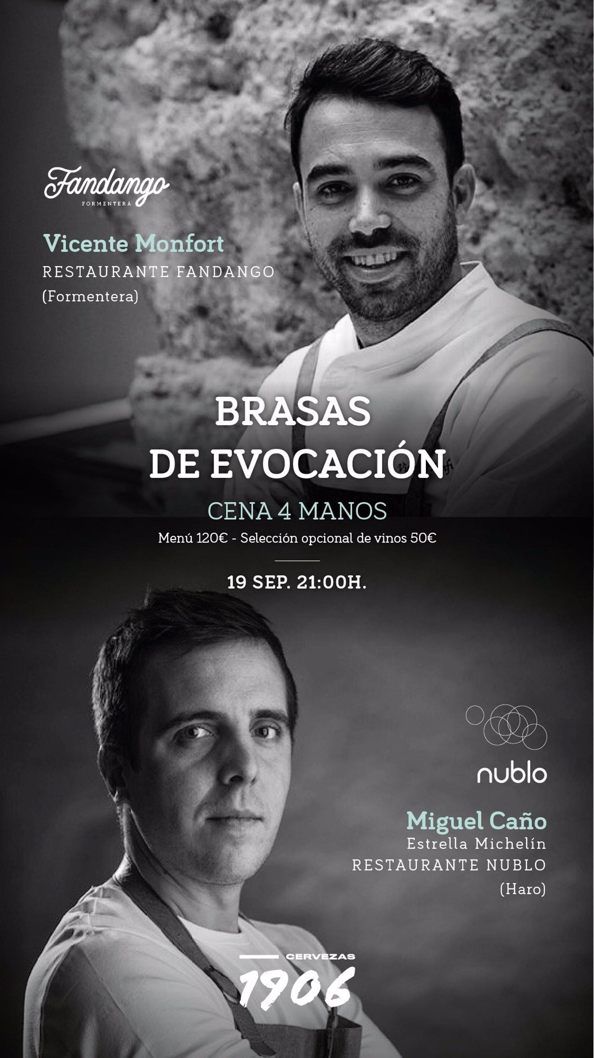 La noche del 19 de septiembre, el chef Miguel Caño (Haro, 1985) se unirá a Vicente Monfort, chef de Fandango, y Luis Arrufat, chef ejecutivo del restaurante de Formentera, para crear la cena a cuatro manos, fusionando lo mejor de ambos proyectos, muy diferentes, pero con sus principales valores en común: cocina de producto, sencillez en las elaboraciones, territorio y búsqueda constante del disfrute y el placer del comensal.