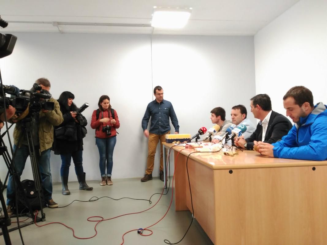 Pedro García ha comenzado la presentación del nuevo producto advirtiendo que por usarlo, “nadie va a ser Irujo ni Olaizola, ni va tener la pegada de Irribarria, ni la elegancia de Merino II o Titín”, pelotaris estos 3 últimos presentes en el acto.