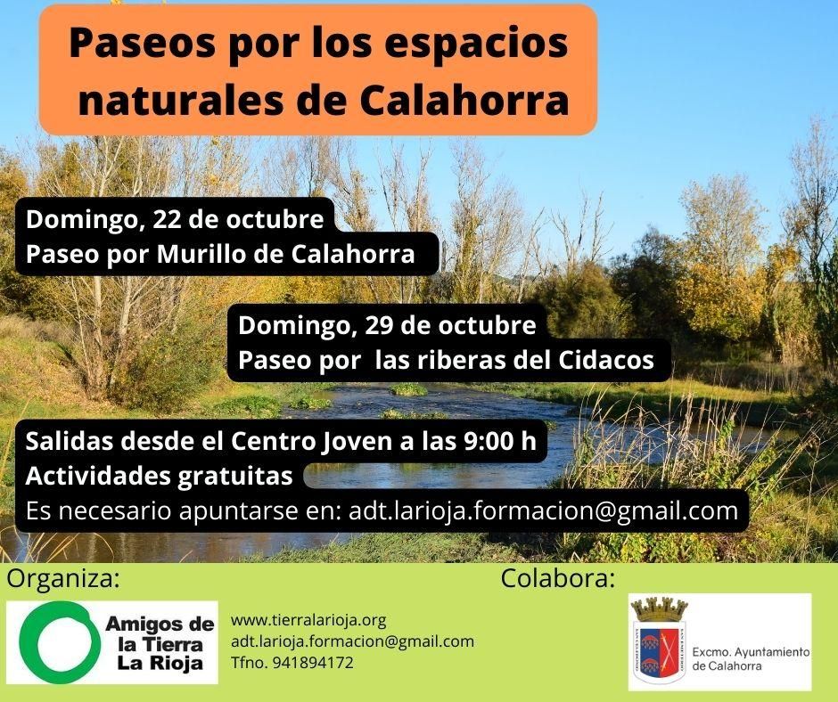 Amigos de la Tierra ha anunciado una serie de paseos para poner en valor el paisaje natural de Calahorra, los próximos domingos 22 y 29 de octubre. “Muy cerca de nosotros y nosotras encontramos espacios de altísimo valor natural. En Calahorra existen espacios naturales en Murillo de Calahorra y el bajo Cidacos de gran valor ambiental y paisajístico. Muchos de ellos están incluidos en la Red Natura 2000”, han explicado. “Queremos acercar a la ciudadanía a nuestra naturaleza, con una visión amplia donde no solo disfrutaremos de nuestros espacios naturales, también conoceremos las problemáticas que los afectan, las especies de fauna y flora que podemos encontrar…”