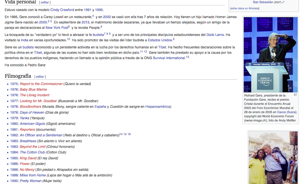 Pedro Sanz aparece en la Wikipedia de Richard Gere