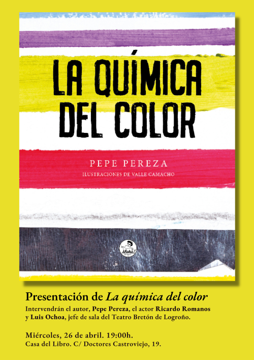 Pepe Pereza presentará La química del color el próximo 26 de abril en La Casa del Libro. El acto, a las 19:00, contará, además, con la presencia del actor Ricardo Romanos y Luis Ochoa, jefe de sala del Teatro Bretón de Logroño.