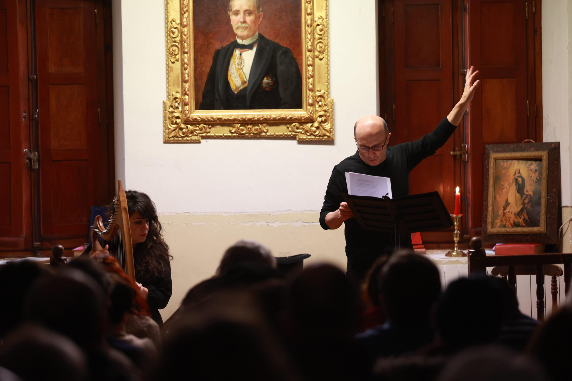 Los textos leídos por Viyuela, que cuentan con dramaturgia del riojano Bernardo Sánchez, han estado acompañados por la música de la arpista Sara Águeda.