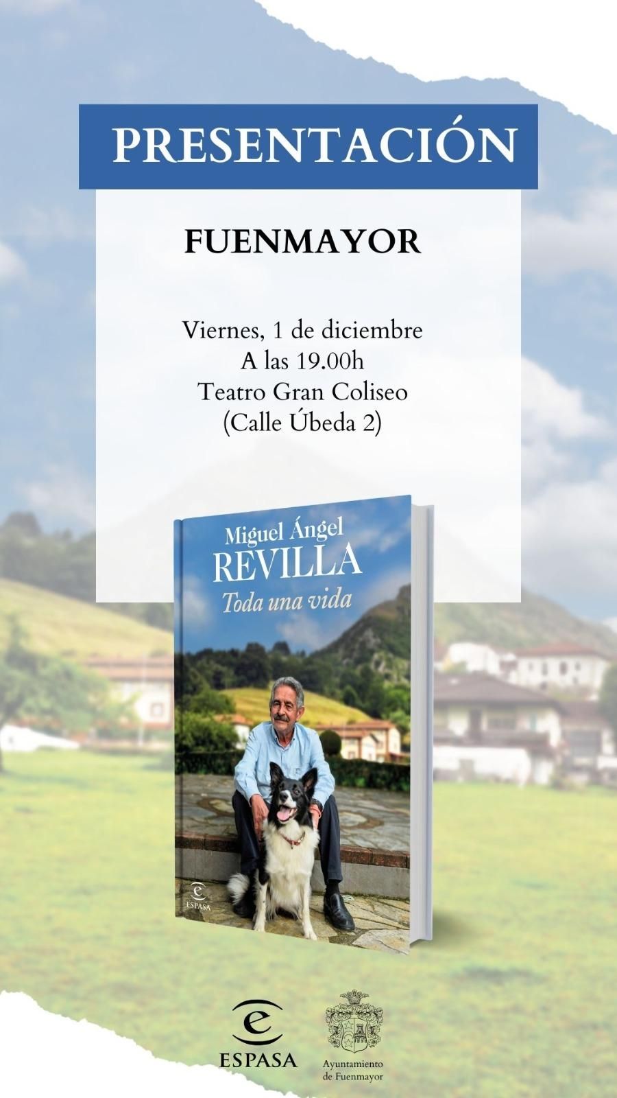 El expresidente de Cantabria, Miguel Ángel Revilla, presenta su nuevo libro 'Toda una vida' este viernes 1 de diciembre en el Teatro Coliseo de Fuenmayor.